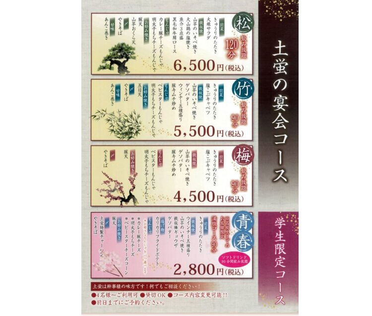 もんじゃ焼きやお好み焼きをはじめ、鉄板焼き、お酒が進む一品からデザートまで、